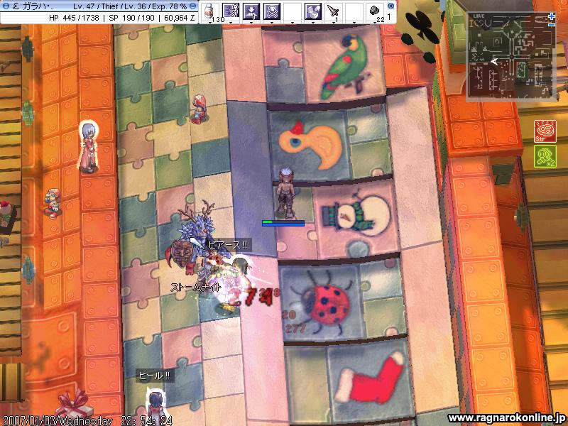 アサシン作っちゃいましたー! てなわけで、今日は1日中シーフをやっていました 私は戦闘職というか前衛職というものは苦手で、すぐに飽きてしまいます なのでJOB31までは頑張れたのですが、それからはいつものように挫折 とりあえずちょくちょくレースでもやっていたのですが、全然当たらなくてお金も減るばかり。 何とか35までは上げたものの、それ以上はお金もないので続けることは出来ませんでした! 不貞寝しながら、起きた後は地道におもちゃで頑張ろうかと思っているとこに・・ 女神が現れました。 Hiプリ様に手伝ってもらい、鳥人間をちくちく叩いて一瞬でJOB40へ。 即座に転職 という流れでございました! とにかくセージはちょっとやる気低下してきたので、しばらくはいろんなキャラを作って遊んでみたいと思います 一応二刀として育てていきますが、武器は8割が借り物という! あくまで気分転換なので装備にお金はかけない様に・・ 飽きやすいですが、とりあえず70あたりまでは頑張れたらなぁと思っています! 以上! この記事にコメントする