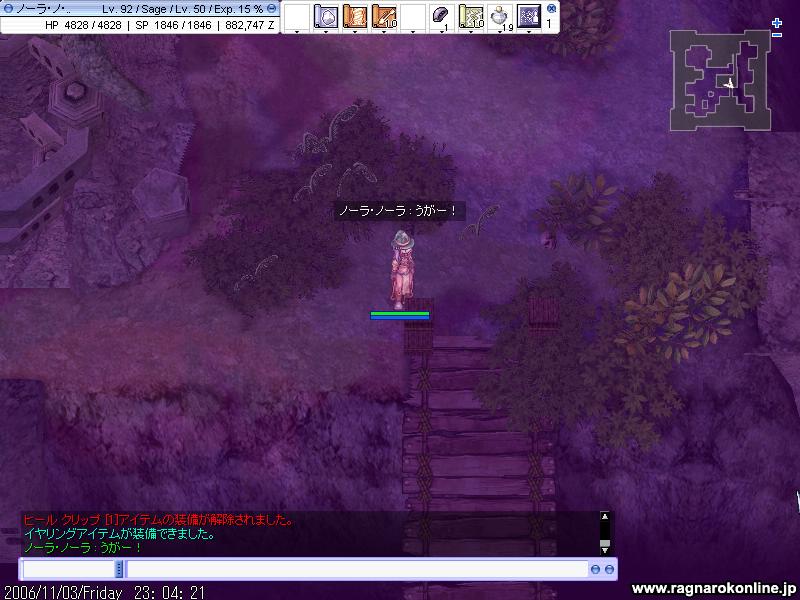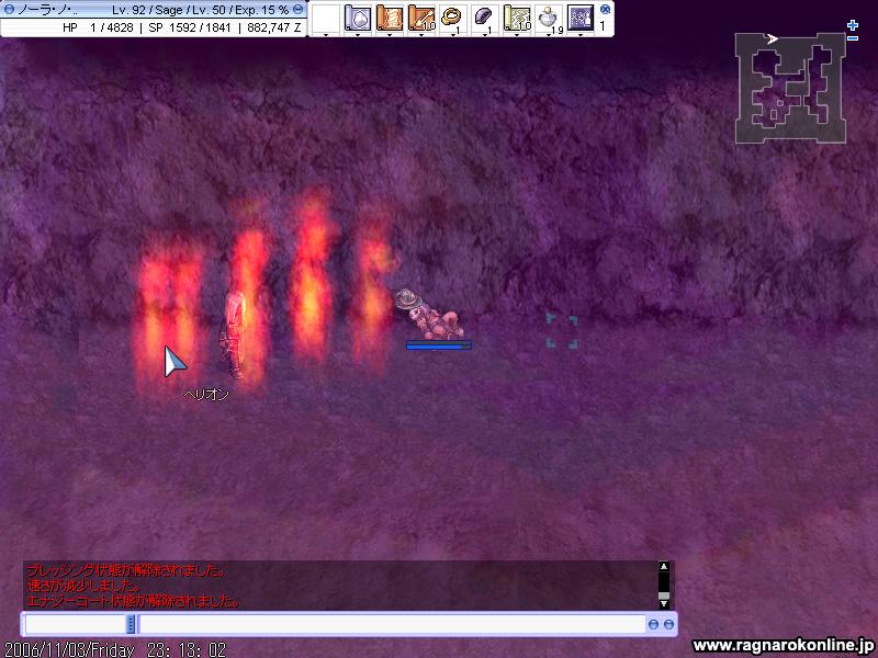 というかSSがいっぱい! いつまでもレースをしてるわけにもいかないので、本日は普通に野良で狩ることにしました 監獄で狩ること約30分 飽きたので帰還。 それでたまには別の狩場に行こうかなぁと考えまして・・ そこで目をつけたのがキルハイル! さっそく野良でキルハイルクエストを1部から消化していくことに そのクエストの過程で、久しぶりにSSをいっぱい撮ったので、そのいくつかをとりあえず。 重要?NPCの3人。 壮絶な事件。 とまぁ、他にもいっぱいあるのですが、めんどいのでこれくらい。 3部まで入るとやっと目的のキルハイルDへ! まだ1Fまでしか行けません MAPの左上から始まり、目的地は右下へ 入ってから知ったのですが、なにやらテレポは使えないと・・ とりあえずビクビクしながらも慎重に進んでいきます。 MAPにいる敵は5体+α。アリス、エリザ、コンスタント、エリオット、エリセル αはアリスの取り巻きの猫とか、イベント用モブ 1Fはどうやらアクティブは少なく、エリザが一番数多かったです なので結構楽かなぁと思ったのですが、、 始めに遭遇したアクティブはコンスタント HPも高くなく、普通に弱い雑魚モンスター のはずですが、 戦っている時に、もう一体足元沸きしてきました。 その後の敵の行動は 自爆 HP5kが一瞬でなくなりました。 その後とか何度か自爆喰らったのですが、一撃で死んだのはこれだけです(汗 気を取り直して最チャレンジ 後の二体のエリオットとエリセル ATKが非常に高く、盾もなかったのでECないと1kとか普通にくらいました エリオットの方はFWで普通に大丈夫なのですが、問題はエリセル! 残影を使ってきます なのでFWも意味なく、白P連打しながらその時は倒しました。 土付与もオススメ。 その後とりあえず3部も無事に終えて、今度は2Fへと行くために5部をやっていたのですが・・ 5部ではキエルの部屋というMAPで、敵を倒しながら進めていくことに もちろんその敵はさっきの敵たちです 5部のSS こんなとこにまで。 エリセルの倒し方。 しかし複数来ると。 こうなる。 それでも何度も死にながら、 かりつ盾を借りて、 ホルンを1時間近く狩って土コンバを集めながらも、 白Pをどんなに使っても、 諦めずにチャレンジいたしました。 その結果見事5番目の奥の部屋へと辿り着く ・・・・? 何をやっても開きはしませんでした 後で知ったのですが、どうやら中で誰かがボスと戦ってるとか それ終わるまで待つらしいですね・・ 不貞腐れて眠り、夜に懲りずにまたチャレンジ しかしソロだと敵倒すのに時間がかかるので、後から来るPTに先を譲り続けて30分。 終わりそうにないので、帰りました さらに言えば、どうやらこの中に入ると6体くらい一気に襲ってくるとか 勝てるはずもありません。 き、キルハイルなんて嫌いなんだから! 頼まれたってもう行かないんだからね! かなり不完全燃焼だったので、今度はヘリオンクエストのGD4F?に目をつけました。 そんなわけで早速クエストをこなしていくことに 経過のSSはあまり取ってないのですが、その中の気になった1枚 な、何だこの犬! 私は魔法使えるからね!! どうでもいいですね。 そんなわけで辿り着いたGD4F ここには凶悪な悪魔ヘリオンがいるそうです。 どうやらかなり強いとか。 しかし私の目的はヘリオンなんかではなく、Dレイスでした そんなわけで 気合を入れて探します。 しかし思ったより敵の数が少なく、Dレイスはおろか他の敵までなかなか遭遇しません。 そんなわけで一休憩。 それから探すこと数分 変なのに絡まれました 通常のATKが1k前後?もちろんボス属性 何よりホーリークロスで4.5k×2 9k へ、ヘリオンなんて嫌いなんだから! 頼まれたってもう行かないんだからね! PR