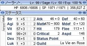 てことですくすく育ち、現在56/41 しかしここからが長い・・ けど頑張りますよ! 昨日書こうと思ってたけど忘れてたので。 とりあえずオーラになったので、ここで初めてセージのステとスキルを I>D>V 装備補正は確か、とんがり、子デザ、骸骨、ソヒ、クリップ、イヤリングだったかと スキルはFW10、FB10、FD10、SW10、SPR10、HD5、ドラゴ5、他前提。 これくらいかな? 計算してないし、覚えてないので何とも! 型でいうとぷち強いマジ型。 こっからは生体でのメモ程度。 生体で95から98の25%くらいまでを過ごし 敵一人100kの経験値を持ち、狩る敵はWSとLKとAX。 時給は運などによって大きく変動しますが 早朝から昼の時間帯で平均3M~4M 索敵が悪いと2M~3M 調子が良いと4M↑ 自己最高は6Mでした。 30分計測ですけどね 人が多い夜の時間帯だと1Mダウンするくらいでしょうか といっても全部デスペナを考えてない話なので、実際はもうちょっと低いかな PR この記事にコメントする