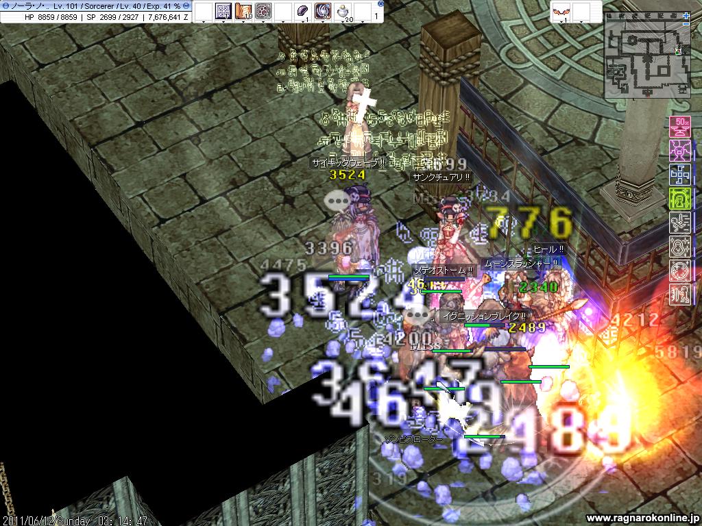 棚とかアビスとかいっぱいだったけど、入ろうか悩んでたりするとだいたい枠埋まっちゃうっていう そんでそのまま夕方までダラダラと過ごしてたら、ギルドの羽とHPの方とADにちょっと行こうと誘われましたので ちょっとだけ行ってきました。 そしたら普通に羽のシビア狩りで、私ただのお荷物でした! 文字通り89%まで荷物持ちまくりです^^ というか最近途中でプチ荷になる傾向が・・w まぁここはそれで終わって、、 ---------------------------- その後やっと棚臨に入れました 前にも一度お邪魔したことのある方たちで、 棚臨立てる人たちの中でも個人的には好きな方たちです 最初棚10行ったんですが、途中から混んで3PTなってちょー重かった! いろいろ行動遅れて迷惑かけちゃったかな・・ そんで終わった後に休憩はさんで今度は9Fどうですかーって感じだったので そのまま2ラウンド目に突入でしたよ! こっちは途中から独占で軽かったし、羽の人が外釣もしてc帖も出てうまかったです 変わらずSSとか撮ってないんだけど おかげさまで101/40まで上がりました! これでVitも30まであげて、ベースジョブ共に一区切りっちゃ一区切りなんだけども。 スキル何とるか迷ってます 一応狩りメインでやってるけども、Gv出てると対人スキルほしくてたまりません。 アルージョ取るか、ウォーマー5まで取るか、、、 どうしよう。 そしてまたその後。 寝ようと思ったら名無しいこうってお誘いありまして 最初はAB民RK献身に皿ってことだったけども 途中からRKとABとWLも増えていくことに そんで3Fまでいったら 入り口にブブ! 最初2F側まで逃げたんだけど その後飛ばそうとしてまた入ったら 蜘蛛やった後に何かメモライズ詠唱し始めて、焦ってCCしようと思ってたら殺されました・・・ 画面が見にくすぎてなんか焦ったよー。 ここら辺対処できないと皿としての存在意味が^^ WLに対抗して、今回Int152で行ってみたけども何も変わらなかった。 しかもABさんが一人MEなので、余計に意味なかった。 途中からプチ荷してました。 PR この記事にコメントする