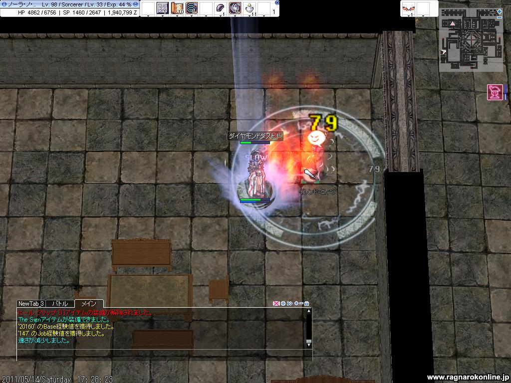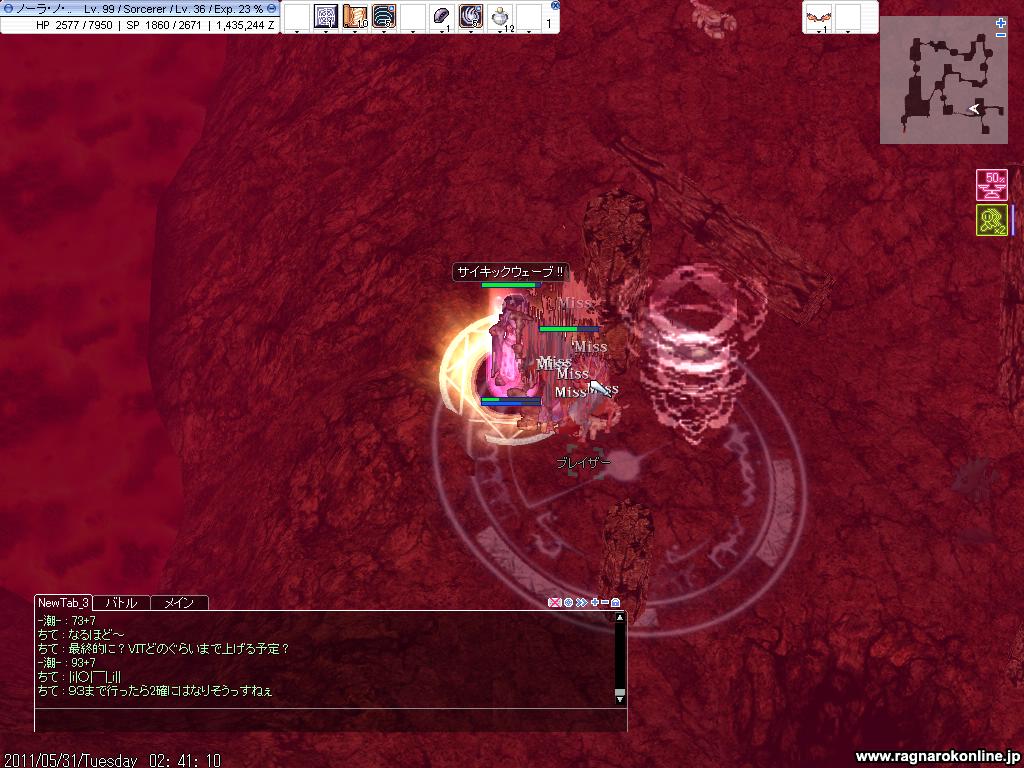 新しいGはやっぱり古参が多いためか、そんなに活発じゃない感じ。各自ソロでいろいろやってる印象な気がします。 といってもうち自身もそうなので、そこは似てるんだけどもー まだ誰ともまともに会話してないっていうね とりあえずGに115以上の方も何人かいるので、105くらいまではあげたいとも思うんだけど 相変わらず臨時は棚ばっかで、でもなかなか行く気になれません ソロはやっぱりブラゴレが1番なのかな ざっとだけどベースが6%/hくらい。まともに頑張れば結構そこまでかからないんだけど、やっぱりモチベーションの問題でしょうか 30分が限度ですよ あとはほかにも適当にいろんなとこいきつつって感じです ホール。 敵のATKとASPD、移動スピードも速め 1体の経験値はブラゴレより上だけど、まとめて狩るには敵のが早いしPWも1確じゃないのがなんとも でも前よりかはある程度マシに狩れるように スリルもあるし気分転換にオススメ でもRKとか多いから人気な時は横沸きで多分厳しいのかなー これからVitあげて耐久伸ばしつつ、精霊スキルが来たら火PWで本命の予定です 生体2。 装備がちゃんとしてないからマジ子のLBとかがやっぱり痛い。 1人ずつ倒してくって感じだけど、属性がバラバラで魔法使い分けるから結構面白いかも。 マジが風槍で一確になれば結構安定したりするかもねー 15分くらい狩ってたらなんと運剣ドロップ。 ちょっとだけ期待したら1Mもいってなかった。 でもラッキーですね 確かアチャcが高かったっけ?ここも気分転換にー どれもじょぶ少なめです