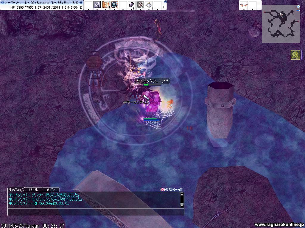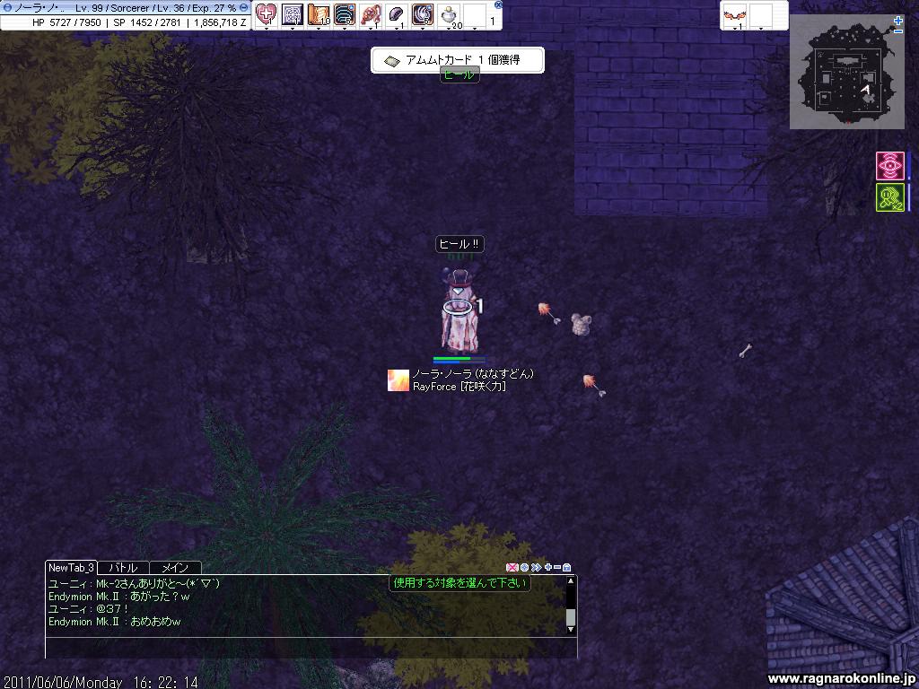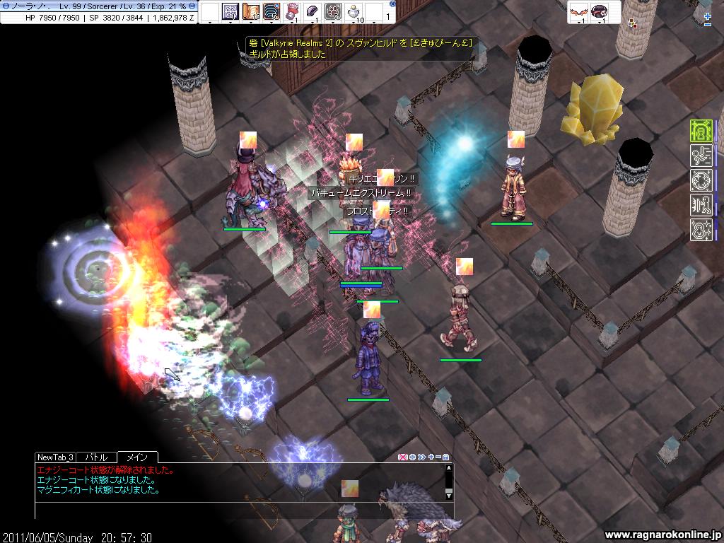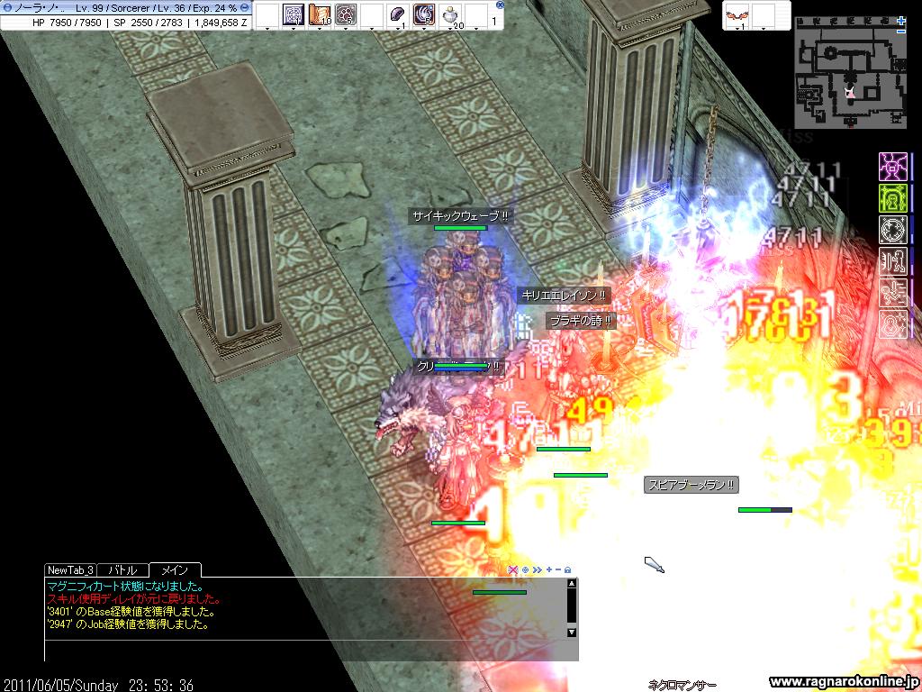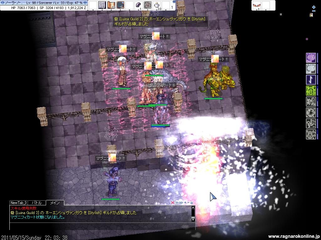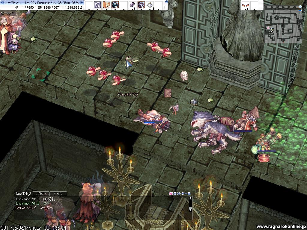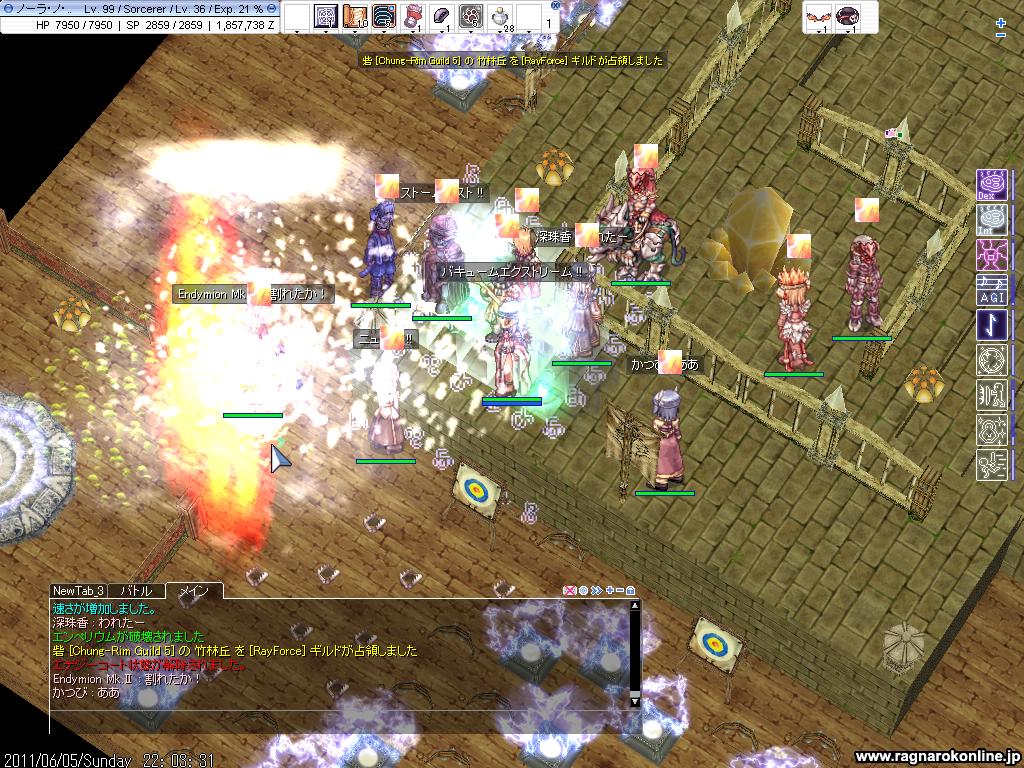 つーかGvしかしてない気がするのは気のせいでしょうか さてさてまず野良は対人ステスキルではなく、あくまでも狩りメインを考えて(ソロ)の育成ですからして・・ まぁとにかく今まで装備は狩りの時とほぼ一緒だったんですが 今回はちょっと変えてみました 何といってもいまさらだけど いまさらだけど 羽のベレーつけて、盾もちゃんと人盾にして RKとかのイグニッションはどっちみち即死な気がするので、 あくまでも魔法重視で、水鎧火肩に今回はアクセもこの前もらったサビクとスピカのアクセをつけてみました まぁおかげで簡単に凍るんだけども。 そんで杖は悩んだけどイレイサーにしてみました 魔法攻撃時一定確率でSP20%消去だけども、やっぱりメインはバキュームくもディス・・って感じで後はFWとEGくらいかなー PWはまだ詠唱かなり遅いし、VSは対人じゃ微妙な感じでしょうか 後はDDが冷凍だったか?で行動不能になるらしいので、レベルで成功確率も変わるみたいだからこれメインなるのかなー? っといっても肝心のその効果は発動しませんでした。 モブで試したときも確率低めだし、皿で使うには微妙でしょうか と本題のGvは やっぱりCVBがメインみたいな感じでしょうか とりあえず最終的なメンバーが メカ1狼1AB2RK2羽1WL1HW1GX1忍1と皿1。後2PCで民1かな やっぱり攻防してる時のSSがとれな・・い・・ まぁ今日のGvは1ヶ月ぐらいやってきた中で一番楽しめたかも 装備かえた効果は少なからずは出たようで 相変わらずRKのスキルに即死なんですが、霧を結構置くのを重視してたらそれなりにSPPも1発は耐えれえたり 後はなんだろう オーラGXの通常攻撃に3秒くらいで死んだりとか! まぁ馬鹿みたいに隠れるとこにサイトして近づくのがいけないんでしょうが。 もうちょいHP欲しいですかね。 というかレベルが。 後は何かいろいろ書きたかったようなきもするけど また今度でいいや 結果はC5だっけ?取得で4週連続砦でした。 初めて1日2回更新な気がす・る・・。 さてさて、昨日知り合いに次のパッチが~~うんぬんの話を聞いたので
